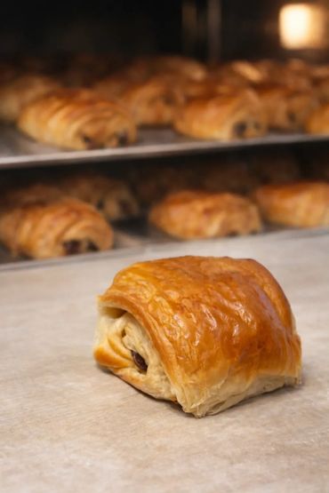 Minis croissant , pan de chocolate o crema vainilla y pasas