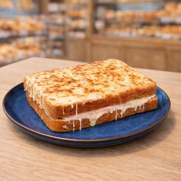 Pan de molde con salsa bechamel , jamon y queso