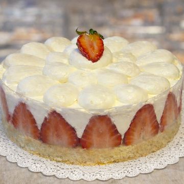 Bizcocho esponjoso , crema mousseline y fresas . Fresco , afrutado y delicado Para pedir 24 horas antes
