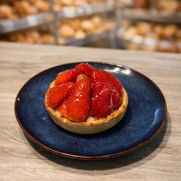 Masa quebrada rellena de crema pastelera con una mezcla de frutas frescas , brillantes y bellamente dispuestas Para pedir 24 horas antes