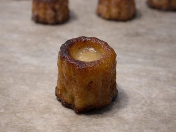 El canelé es un pequeno postre francés de la region de Burdeos con una corteza caramelizada y crujiente aromatizado con vainilla y ron