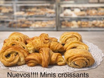 Minis croissant , pan de chocolate o crema vainilla y pasas