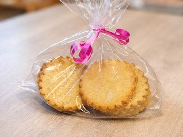 Galletas delicadas y crujientes , disponibles de vainilla , coco o sutilmente aromatizadas con jengibre y semillas de chia .