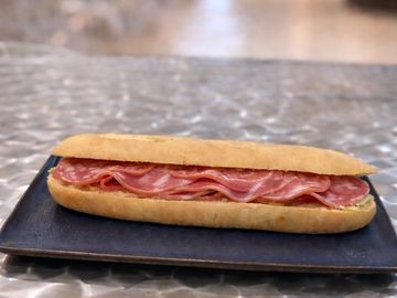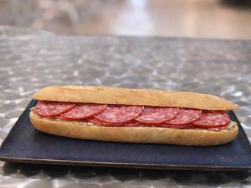 Media baguette con salami y mantequilla