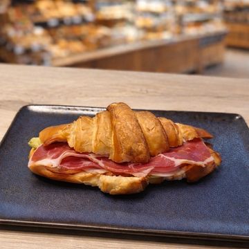 Croissant con pesto , lechuga , tomate y jamon serrano