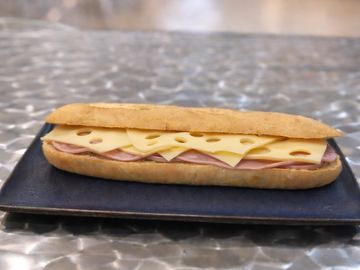 Media baguette con jamon , queso y mantequilla