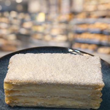 Finas capas de hojaldre crujiente , rellenas de crema pastelera suave y cubierto de azucar glass .Para pedir 24 horas antes