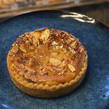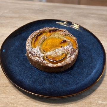 Masa quebrada , crema de almendras con pistacho y albaricoque .