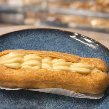 Masa choux ligera , rellena de crema pastalera de vainilla . Delicioso , clasico e irresistible .
