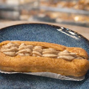 Masa choux ligera , rellena de crema pastalera de café . Delicioso , clasico e irresistible .