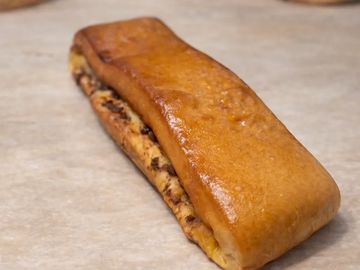 Pan de leche con crema de pistacho y chocolate